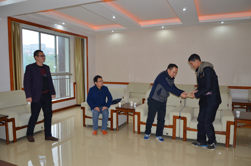 10月31日下午,县政协相关负责人代表政协委员爱心基金来到县一中、县龙阳中学慰问“孝心少年”周杰、邱湘,为两位孩子分别送上5000元爱心助学金。