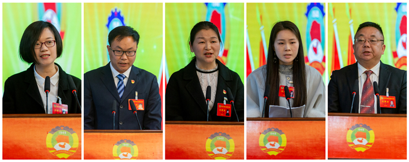 县政协委员郭芳、李戈锐、李娟、廖萌、陈泽作大会协商发言